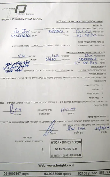 • רשיונות לעבודה על במות הרמה + מנופי סל