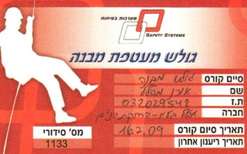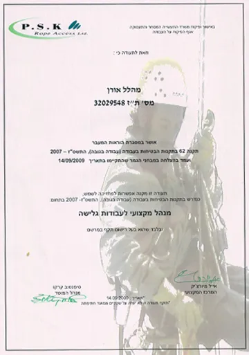 • תעודת מנהל מקצועי לעבודות גובה + סנפלינג