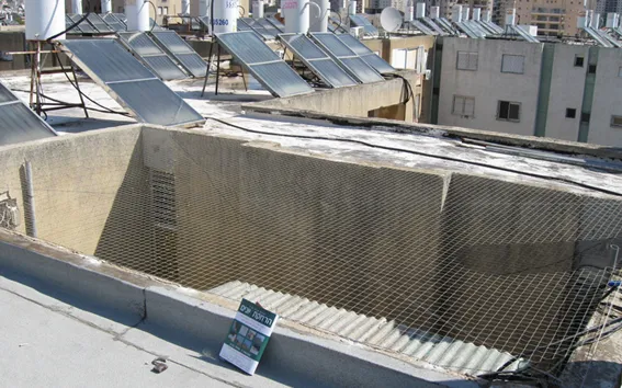 בגגות רעפים נתקין רשת חופה ע”י הגבהת הגג ע”י עמודים מנירוסטה הגבוהים מהגג בתוספת של – 1.5 מטר, בן עמוד לעמוד נתקין כבל פלדה (מסגרת פלדה) בצורה מתוחה אשר תאפשר להתקין עליה את רשת יונים חופה.